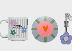 Kit Taza + Posavasos + Llavero “Amiga, eres un tesoro”