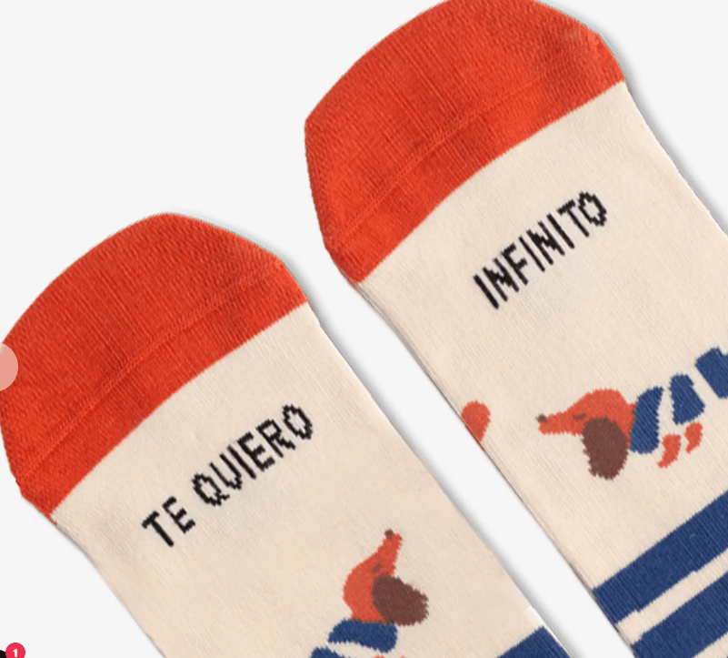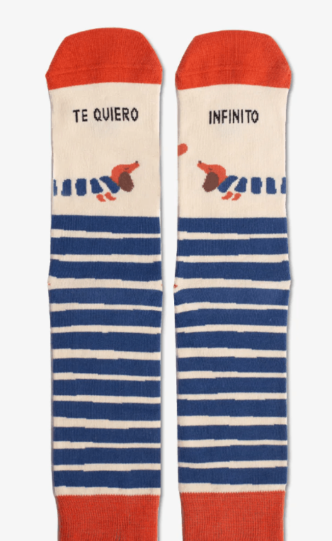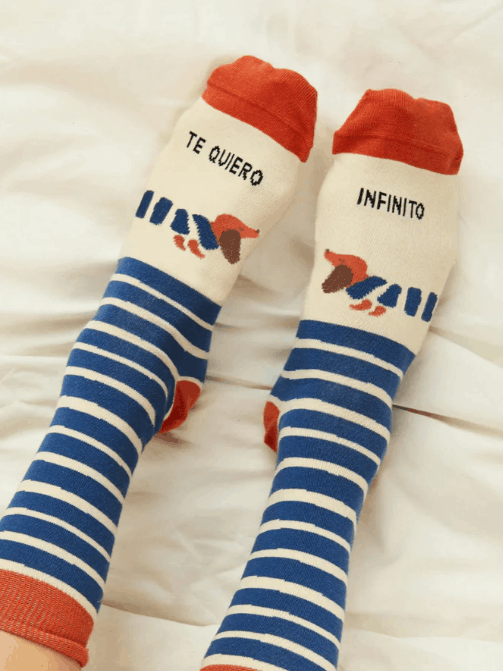 Porque querer infinito también puede ser divertido. Unos calcetines con mensaje y mucho cariño, ideales para amantes de los perros… y del amor sin medida.